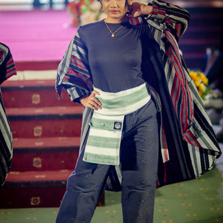 Defined by relaxed silhouettes and thoughtful construction, the pieces moved naturally with every wearer. Indigenous textiles were placed as accents, allowing the garments to remain versatile while carrying cultural identity.
